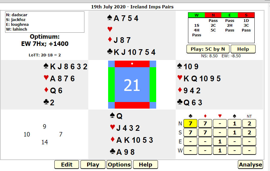 Bridgewebs page for Ireland imps All July results can be found at the link with hands.