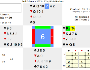 And so it began ... Ace King and another diamond from Python Penelope and Diamonds Dora swung a 4th highest spade from her long suit blissfully unaware of the consequences for declarer.